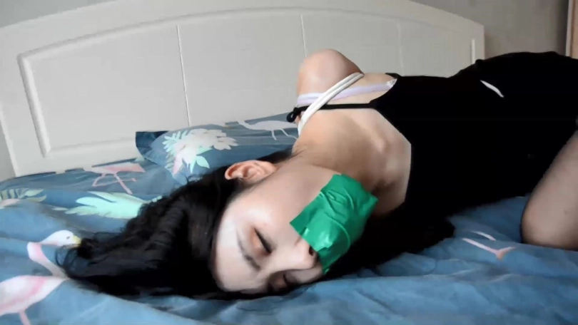 文清走了,吴晗在床上扭动身体剧烈挣扎,然而始终无济于事,忍受着口中男士脏内裤和鼻子边臭鞋折磨,最终吴晗减小挣扎幅度,在黑暗中无助地喘息着。
