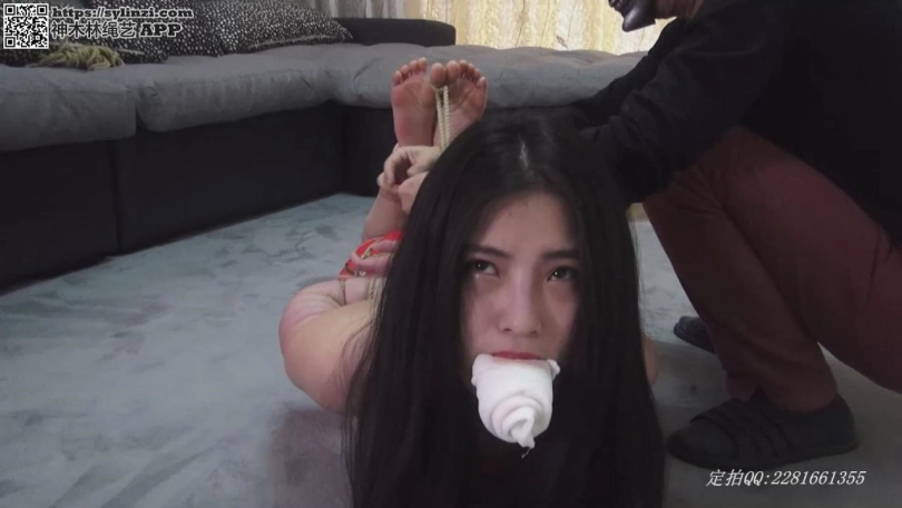 当家花旦甜甜,身穿中国红肚兜儿红内裤,被捆成紧缚五花,胳膊腿都被捆成莲藕,后来又被捆成驷马,毛巾塞嘴,呜呜挣扎。