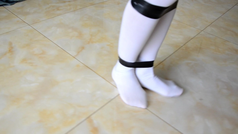 【逍遥】《密集白丝缚02》白丝裤袜和白丝长手套 套上白丝长筒袜包裹 黑丝手套固定捆绑艰难蠕动前行
