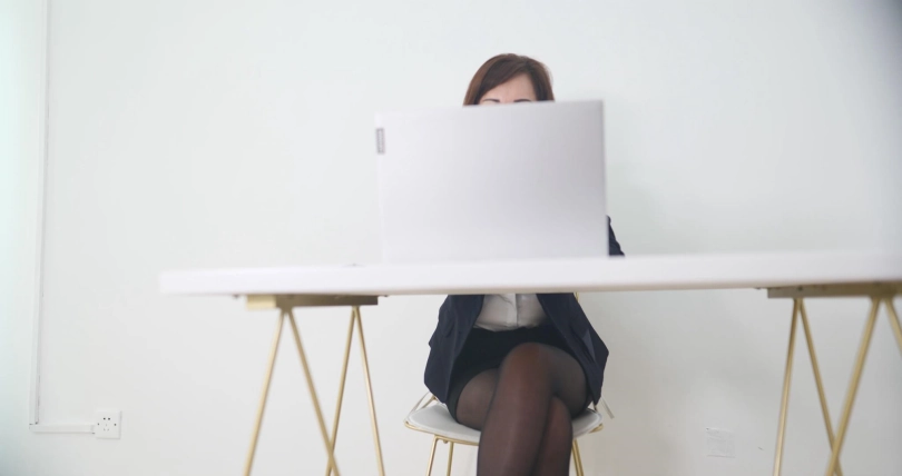 女主角碰一下,一个黑衣人出现在她面前,她吓一跳放下笔记本,发现房间里没有人,再次拿起来的时候黑衣人已经坐在她面前了。