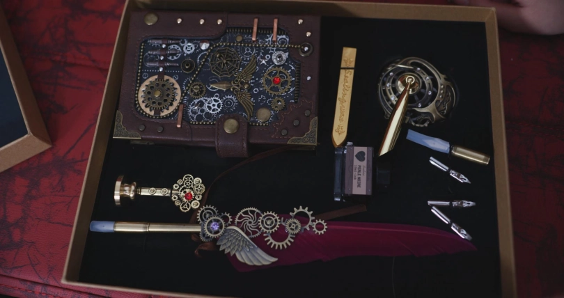 女主失落的回到家里,看到早上发现的盒子,一打开发现里面是精致的笔记本。