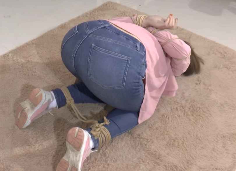 紧身牛仔裤,白色T恤,粉色外套。邻家女孩的样子,看着还是不错的。喜欢五花大绑和反铐的朋友们不要错过哦。