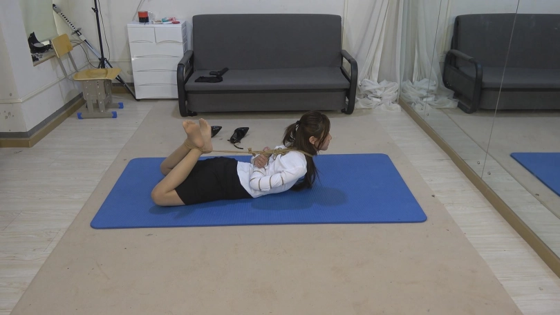 大美女甘然,真的很漂亮,笑起来很好看。OL装肉丝成熟风。五花大绑,驷马挣扎半天,试图自己解开绳子,最终失败。