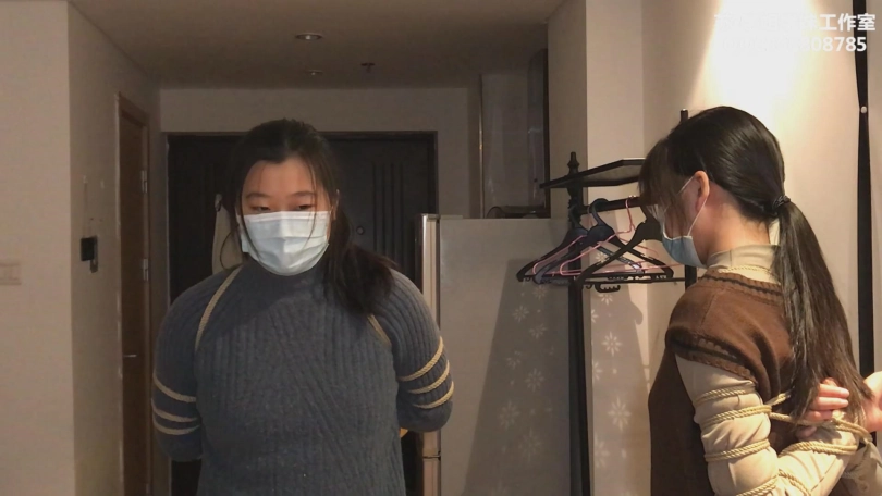 两个可爱的中学生小姐妹一起来试镜,初次体验捆绑。两人刚来的时候超级紧张,站在门口一直往里望,拉着手不赶进来。进来一套五花之后,两人都放松了下来,开始坐在一起被绑着聊天。其中一个练过舞蹈,柔韧性超好,极限驷马不在话下。另一个小时候玩过家人的手铐,把小伙伴铐起来结果解不开了,还被大人打了一顿。五花+超紧驷马+戴镣下跪+戴镣行走,白鞋白袜。(耐克空军板鞋和阿迪stan smith)