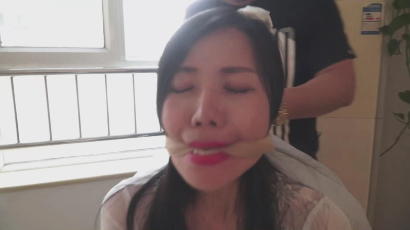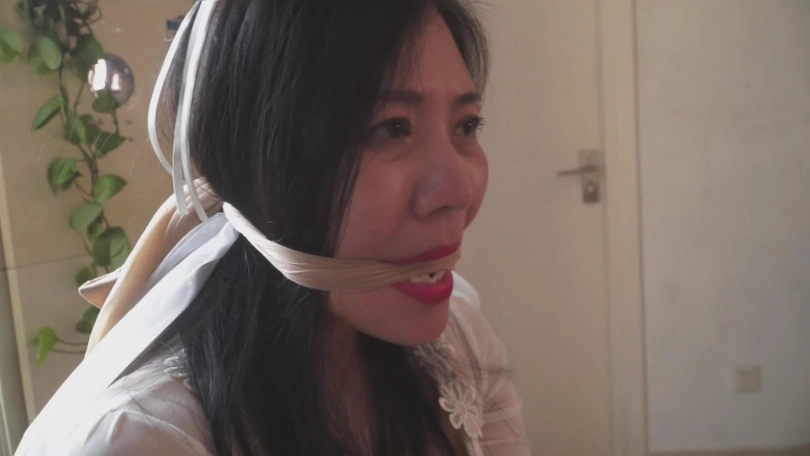 女井林静卧底被捕,穿黑丝,带头纱,丝袜勒嘴,抢过歹徒的手枪后,持枪但仍被反捕。之后又是白布蒙嘴。后歹徒将林静用大字型绑在床上,肉丝袜塞嘴,接着胶带封嘴。