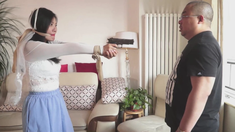 【逍遥】《女井林静小故事》002(李然主演,黑丝长裙及头纱,勒嘴持枪,大字型床上捆绑)
