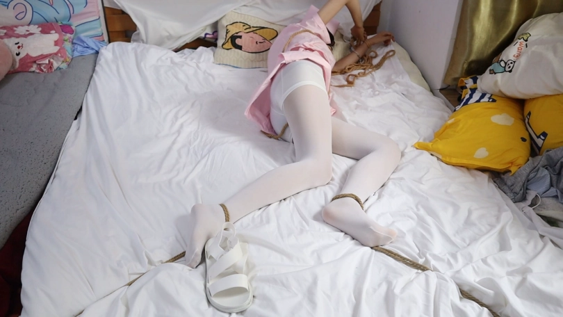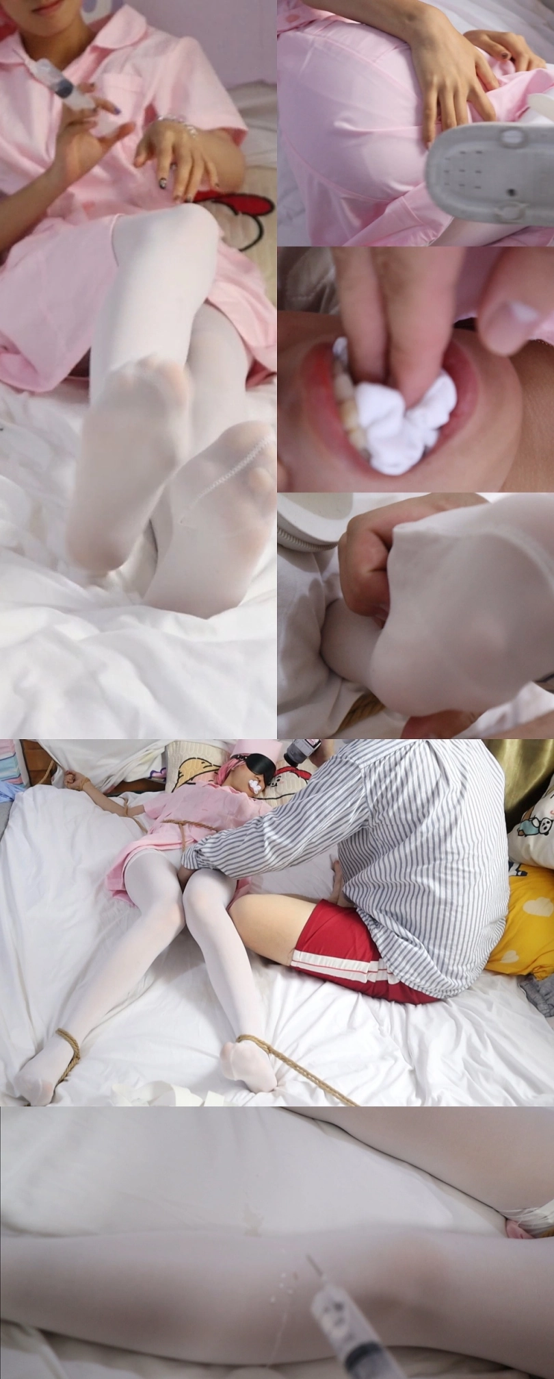 感冒打针反被绑,柔弱小护士四肢绑在床上,用袜子强行塞入被推到护士姐姐的嘴巴里,身材很棒!