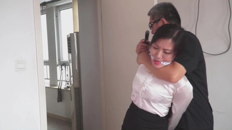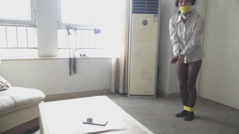 女井队长林静,穿着制服白丝袜,卧底侦查。结果被匪徒发现,挟持为人质。匪徒挟持着林静逃脱后,脱掉林静的白丝袜,勒住她的嘴巴。然后让林静穿上一条黑丝,接着用胶带将林静捆绑堵嘴。林静通过挣扎,来到客厅,发现桌上的手机,于是用穿着黑丝的脚去拿手机,并且拨号求救。号码刚刚拨通,匪徒回来夺过电话。之后将林静摆成一个耻汝的姿势,绑在柱子上,任其挣扎。