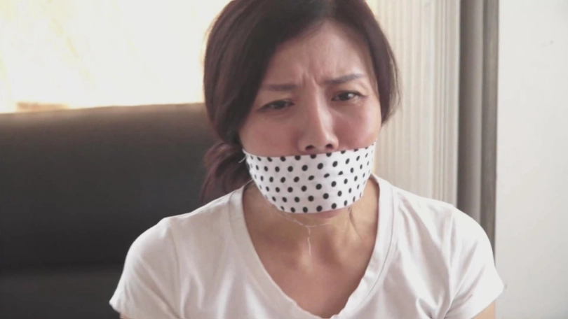 女井队长林静,穿着T恤牛仔裤,裤子里面还穿了肉丝袜。她潜入到匪徒家中,发现关键证据,却被匪徒发现。匪徒挟持林静为人质逃脱,接着逼迫林静用日本影视中才会出现的斑点布蒙住自己的嘴巴,然后将林静绑了起来,接着布置好枪械陷阱。当机关快要触发的一刻,林静只能用被蒙住的嘴发出呜呜的叫声,并且疯狂地挣扎摇头……之后,匪徒又将林静带到另外一处,脱掉林静的裤子,林静露出了穿着丝袜的屁股。然后用毛巾塞住林静的嘴,又用肉丝袜蒙住林静的眼睛,并将她绑成了驷马。可怜的女井林静只能在桌上无助地挣扎……
