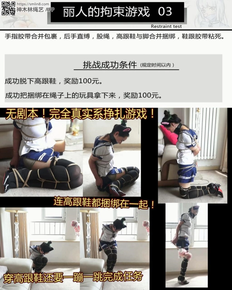 很明显灵感来自日本的紧缚实验,这个系列一开始非常有趣,但是长期的解缚太过单调,于是自己有了灵感,如果让美女被用奇特的方法捆绑,然后来完成各种游戏是不是会更有趣,于是带着这种想法制作出了中国版的紧缚试验,但内核做了改变,如果喜欢的请支持一下~如果喜欢这种玩法的也可以留言!