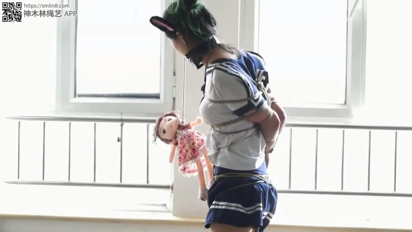摇摇晃晃的美女一蹦一跳的终于够到了玩偶,但这里美女又触碰到我们的另外一个陷阱了,虽然美女摸到玩偶了,但因为手指被胶带包裹她还是解不开捆绑玩偶的绳子,又是一次明明在眼前却解不开的绝望感。