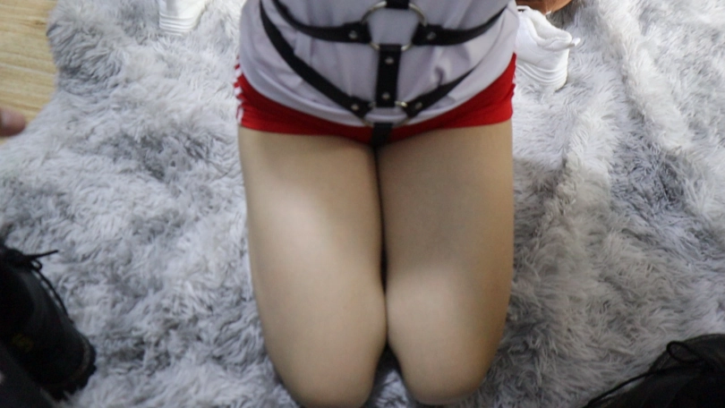 口水慢慢滴下,命令少女下跪塞进震动玩具强制,