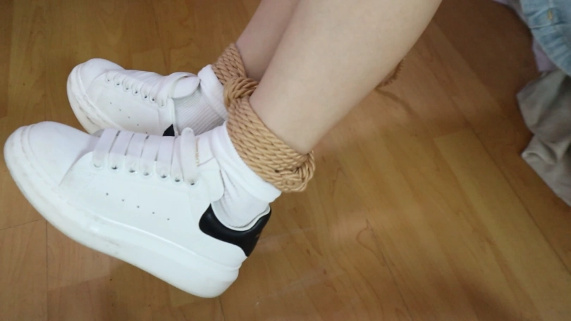 可是腿和脚被死死的绑住,怎么都挣扎不开,挠一挠姐姐的棉袜小脚立马就开始咯咯咯的笑了,