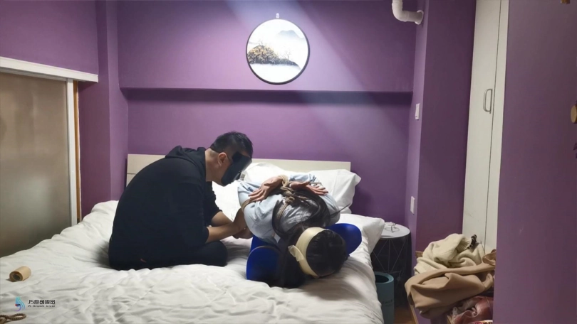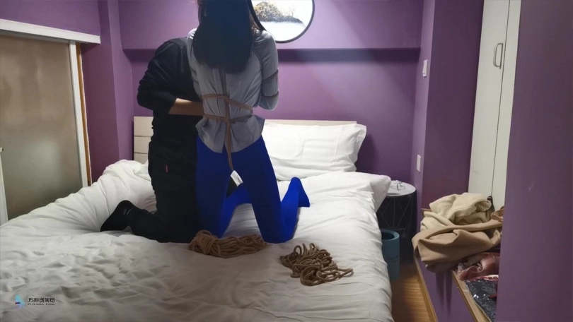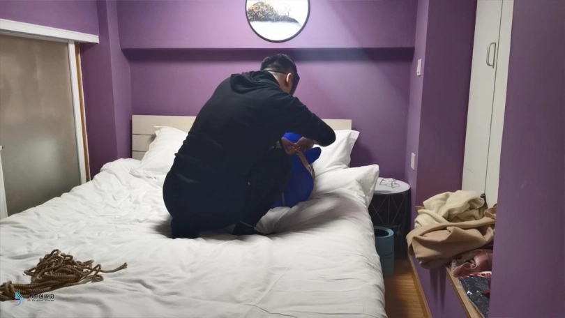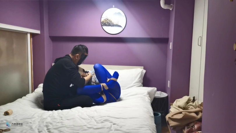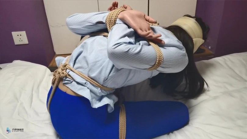› 【JS】采文 性感蓝丝+后高手+股绳+团缚+蒙眼+口球堵嘴+挠痒+玩足