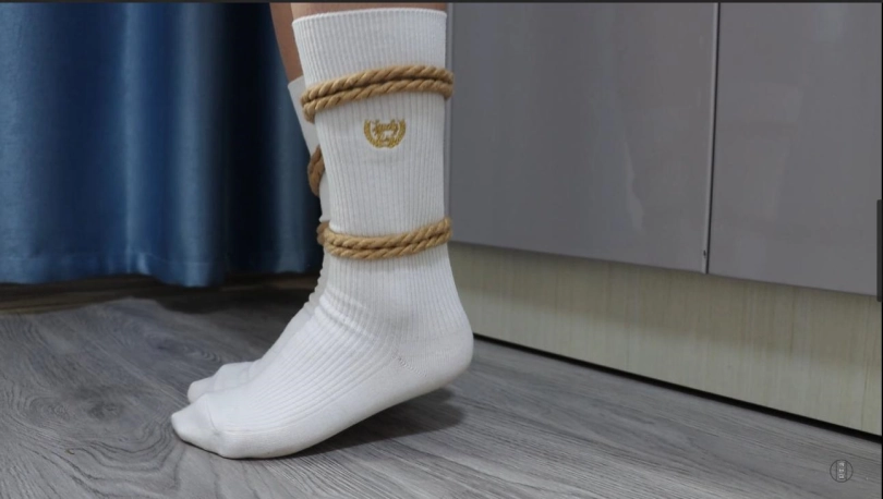 觉醒本性的许斌开始了对珊珊细嫩敏感脚底的TK折磨,被袜子蒙住双眼令珊珊对脚底的感触更加敏感,无论是隔着脏脏的白棉袜挠痒,还是脱掉袜子后用小刷子搔弄裸足,珊珊都只能在浑身拘束中忍耐着,甚至连脚趾都被扎带捆在一起,笑却笑不出声,只得用呜呜声去抗议。最终,被驷马放置的珊珊就这样度过了难忘的一晚。