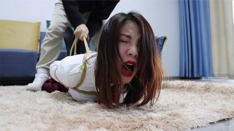 黑子将上半身捆绑好的含含放在了地上,开始捆绑她的下半身。“你到底想怎么样?!”,“怎么样?哼哼,一会儿你就知道怎么样了!” 黑子将含含以驷马的方式拘束好后,“这下你就乖你多了,还有你这张嘴...”,黑子拿来一个黑色的实心大口径塞口球,含含刚意识到什么,想说些什么,就被黑子用塞口球将小嘴严实地堵了起来!“哎我看看,果然是堵起来顺眼多了。让你废话那么多,现在我去办事啊,等我回来的时候,那时候你也没什么利用价值了。我再把你卖掉...”,含含听到这里惊恐极了,她不知道自己未来是怎么样的,想说什么但因为小嘴被堵上了,只能不停地发出“嗯嗯,嗯嗯”的呻吟声。