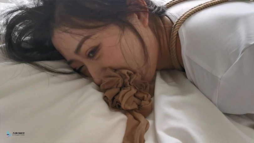 艾可穿着瑜伽服和白棉袜,被驷马紧紧的捆绑在床上。脚趾也不放过,也要绑上。顽皮的艾可还要体验被吊起荡秋千的感觉,屋里没有能吊的地方,只能抓起她身上的绳子,把她拎起来体验下。太不老实,用丝袜塞进她的嘴巴,嗯,终于安静了。。。