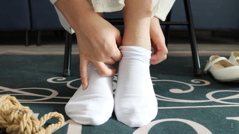 因为对娜娜有了更多的了解,所以此次服装搭配则是按照我印象中的温顺女友风格来搭配的,长裙换了一套又一套,终于挑中了这套令我眼前一亮的搭配(悄咪咪放一张定妆照)。老样子因为我是白袜控所以还是白棉袜,这次的白棉袜长度区别于前两次,纯白刚过脚踝的棉袜,同时这次我也如愿以偿的加入了真正的一镜式原味堵嘴(当然,我还使坏的交代了要在换衣服的时候就穿着这双袜子,包括之前的踮脚吊缚时也是如此,所以嘛……抱歉娜娜,个人私心个人私心hhh)