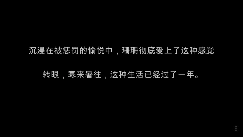 沉浸于被惩罚的[不可描述]中,这样的日子过了一年,这一年间珊珊变得更加乖巧了,可以被绑着做家务,只是做错事的频率多了些,也不知是真的做不好,还是在期待做不好的惩罚呢?