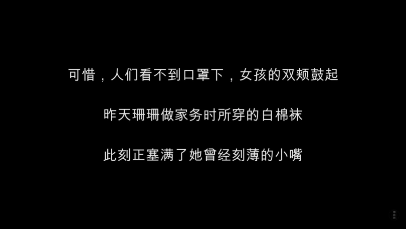 【小彩蛋】踮脚吊缚时,用于堵嘴的棉袜和那双运动鞋都在【中】出现过,就在娜娜挣扎跳到卧室时出现了一瞬间,23333本意是想弄个小细节的,算是个小彩蛋。