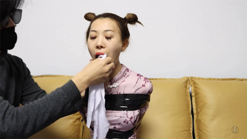 一向自信的魔术师在一次公演之前与他的助手沟通,希望能够提前演练即将到来的表演。助手早就对美貌的魔术师心存想法,苦于一直没有机会,借着这次魔术师提出的建议,他打算精心策划一出戏码!“姐,要不咱们先用胶带试试吧,我给你绑紧了,看你能不能挣脱”,“行啊,没问题”。助手拿出一卷黑色的胶带,朝着魔术师的身子开始缠起,一圈一圈,将她紧紧缚好。助手又从腰间拿出了平时魔术时使用的一大块白布,将魔术师的嘴巴塞的满满的。此时的魔术师全身被黑色的胶带固定,不停地挣扎,嘴巴里却只能不停地发出嗯嗯的声音... 几分钟的挣扎后,性感的魔术师已经找到了解缚的关键节点,她心里洋洋得得意着,“就这么简单”。但她所不知的是,这一切都是助手早已布置好的安排...