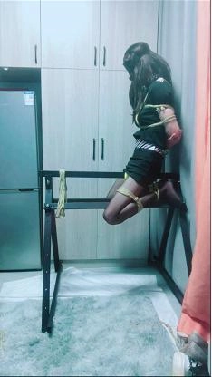 好久没玩了,这次还是玩玩让自己又爱又恨的三角架,爱的是那种手脚完全束缚在架子上的无助感,恨的是那种每时每刻都在狠狠折磨自己的感觉,不像前几次还是有一些受力点可以让自己舒服一些,这次完全的把双手缚在了背后,没有任何的受力点,值得注意的是没有受力点不是很容易保持平衡,缚在上面可不能乱动,不然会不小心摔下来的,当然你乱动,传来的刺痛酸痛感就会更加的强烈,作为经典的一种SM道具三角架,是会让每个尝试的人又爱又恨的~