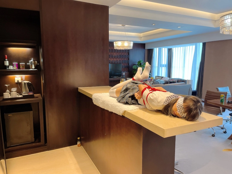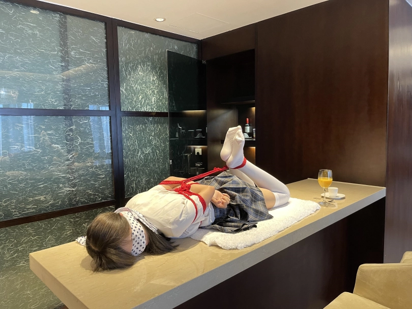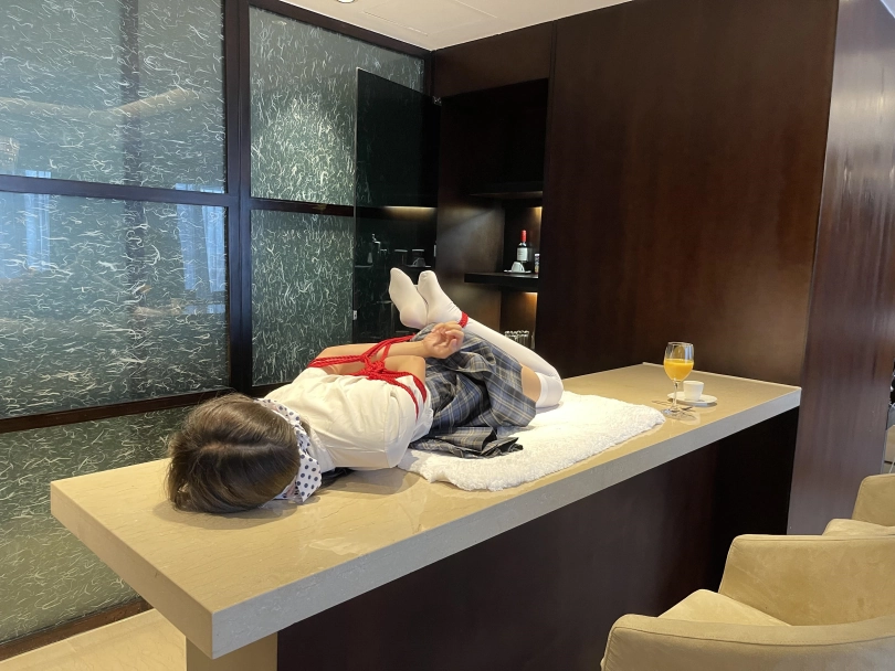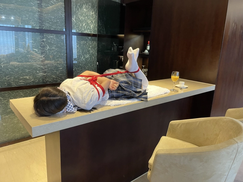 可怜的小茶茶就这样被驷马捆绑放置在吧台桌面上,周围人审视的目光让她浑身不自在,羞耻感让茶茶不断的扭动着身体。男人时不时的抚摸让她不安感越来越强,哪怕放置时也下意识害羞的扭动着自己的娇躯。小萝莉可爱的娇躯被无情的拘束起来,大肆展示着。少女不知道的是,客人们马上就要到了....