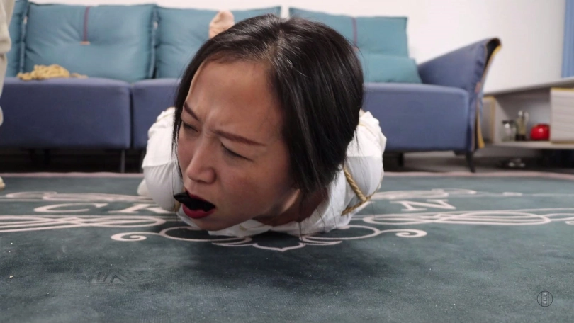 文清扭动身体在地上来回呜呜呜闷哼挣扎,可这次不管怎么挣扎绳索纹丝未动,始终无济于事,最终精疲力尽的她减小挣扎幅度,低下头躺平等待家人回来解放她。