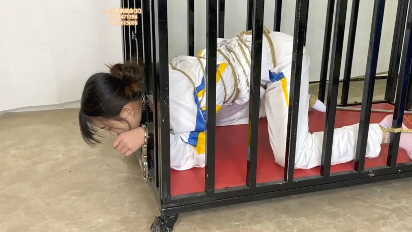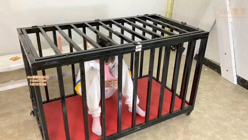 校服学妹朵朵被关进铁笼捆绑拘束