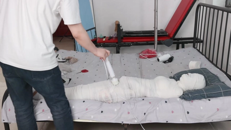 查看完整版本: 【心悦艺束】外卖惊魂(下)—承接上部,被老板调教拘束的女孩好不容易找到机会逃跑,却被反锁的单门拦下,这下老板可是气坏了,把女孩全身上下都用胶带和绷带层层缠绕,彻底杜绝女孩逃跑的可能,而且还要好好惩罚她
