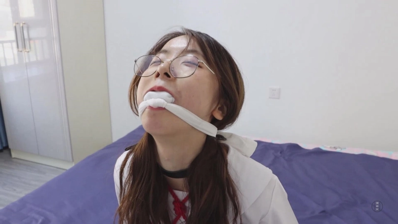 在正式开始自我奴役游戏之前,需要先准备好道具才行,但由于刚才的憋尿挑战失败,小清决定给自己增加难度,以被绑着的状态去准备自我奴役需要的道具。想着,她取出了绳子和一双白色长筒丝袜。