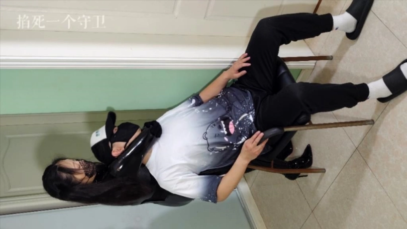 刚发现钥匙放进文胸里,这时另一名蒙面看守进入,发现正在找东西的女主,悄声走到女主身后,将女主勒住,女主奋力挣扎(蒙面男抱起女主,女主腾空双腿乱蹬),最后女主失去力气。瘫软过去。这时蒙面男将女主长靴脱下,一边还说“真性感,里面还穿了黑丝,真不错”接着脱掉女主的皮衣露出里面的紧身衣和黑丝,这时女主清醒,勾引蒙面男,蒙面男上当被女主骑在身上制服,女主起身来到卫生间门口,掏出钥匙打开门,将里面被绑住手脚的的人质救出,对人人质说“此地不宜久留快走。”结果人质也已经黑化,趁女主不注意,将女主勒住,两人坐在地上,女主被勒住脖子,两条腿不停摩擦地面来回乱蹬,双手奋力想挣脱束缚,结果越勒越紧,慢慢失去力气。