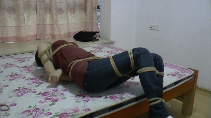 说着,玟莉准备离开,老黑拿出手铐,迅速把玟莉给铐上,然后给玟莉搜身,拿出玟莉的手机钱包等个人用品后,给玟莉戴上脚镣,用丝袜堵上嘴,蒙上眼带到小房间。带到房间里,老黑用一个绳子从玟莉的手铐中间穿过吊了起来,先饿你几天,看你老实不老实。说着,老黑便离开了。老黑走后,玟莉解开了手铐上的绳子,正准备离开,老黑出现了。发现了,气急败坏。拿出皮鞭开始抽打玟莉,玟莉很快开始屈,求饶。老黑说道“多亏多个心眼回来看了一眼,要不然这个偌大的产业就被你给毁了”。之后,老黑脱掉玟莉的鞋子,露出白色短棉袜,用绳子把玟莉紧紧捆绑起来(绑法:上身日式,下身脚踝,小腿,大腿,膝盖处都绑上,还要把屁股那也绑上(忘了怎么形容了,不过我猜你会懂得),丝袜嘟嘴(丝袜不要在嘴巴外面流出太多,影响美观),蒙眼),老黑离开,玟莉拼命挣扎