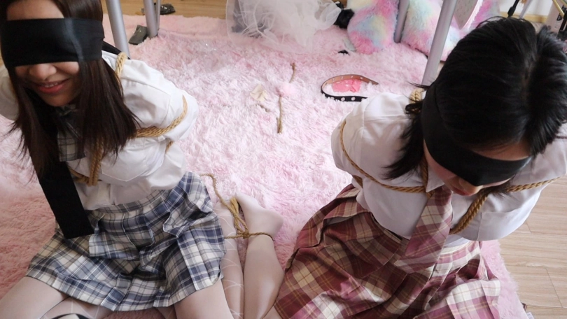 随着越来越兴奋 两位少女直接自发的抬起被捆绑在一起的腿 悬在空中 少女的内裤暴露无遗
