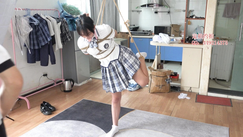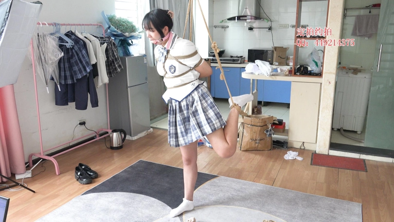 【子衿】琳琳单腿吊绑,TK挠脚心,口球放置口水直流