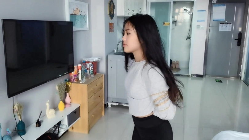 这小妮子是个意籍华人。不知大家怎么看,反正我第一次见到她,就觉得有点像舒淇。这次把她五花大绑,双脚掉在摇椅上,嘴巴用胶带封住。骗她说我要出去,半天才能回来。把这丫头吓的不停的“呜呜”表示抗议-抗议无效。。。