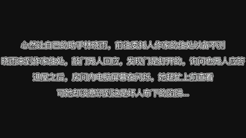 心然让自己的助手林晓雨,前往委托人作家的住处以备不测