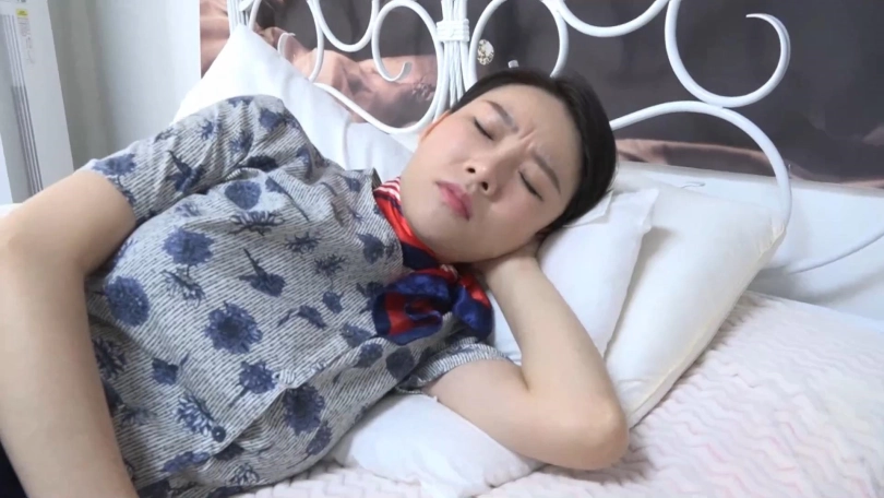 穿着肉丝高跟的空姐,空姐在床上睡觉,表情痛苦仿佛在做噩梦。