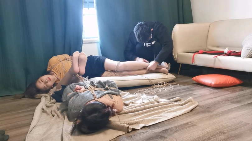大家没想到吧,葡萄和她的表姐雪碧还能再次复出。这次是拍了一个双人的绳艺视频,第一次拍这种的,葡萄被日式驷马放置在地上,雪碧被日式跪缚吊在窗边的栏杆上,两姐妹自己找办法互相解绳子。