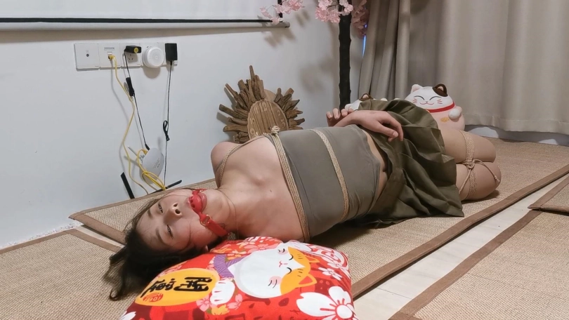 新来的小姑娘小荣,妹子身材还是不错的,柔韧性也是很好,绑个直臂驷马毫无压力,之后就是大家都喜欢的放置时间了,开始是放置在小桌子上的,后来妹子动的太厉害直接翻下去了,一下子给摔老实了。