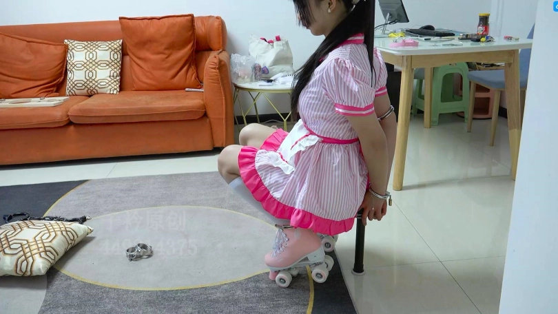 › 【子衿】琳琳镣铐轮滑鞋白丝袜TK挠痒折磨 连体镣铐 手铐脚镣 木枷 五花紧缚 室外滑冰 驷马水晶口球口水