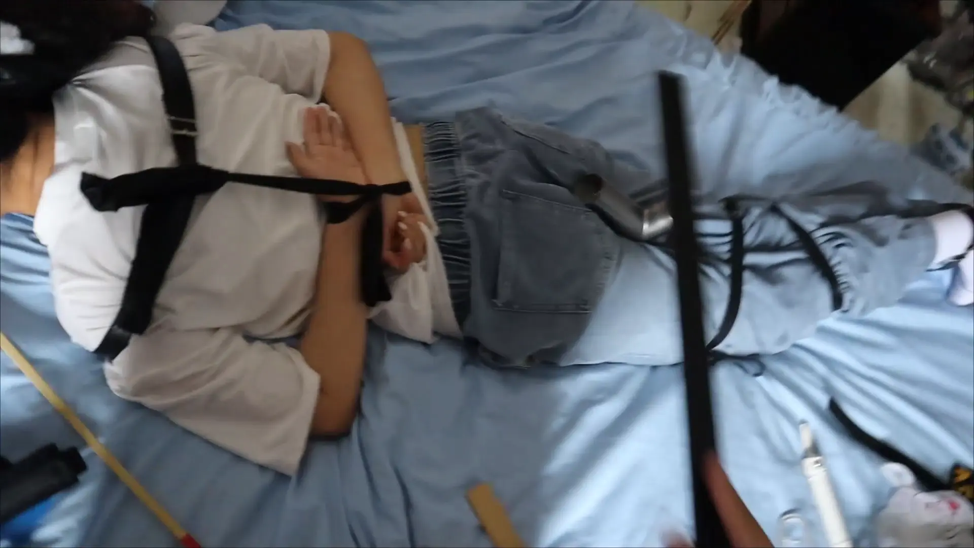 › 【荷仙少女】线下真实调教高挑白袜牛仔裤素人女孩小心翼翼来接受男主调教,一进门就见到几十种鞭子sp害怕又兴奋,皮带绑好身体手脚,纯记录双视,鞭打到后面痛苦挣扎直接大声哭泣喊道便报数边喊谢谢主人