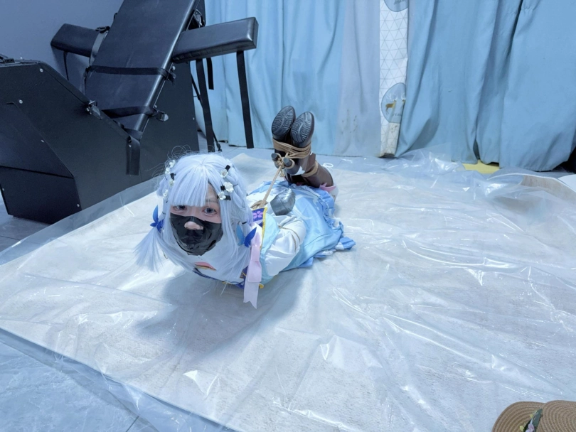 因为在场景2中挠吐了,收拾了一会,重新堵嘴(这次拿掉了堵嘴物改成胶带封嘴了,不过也是同样的手法多层加固)