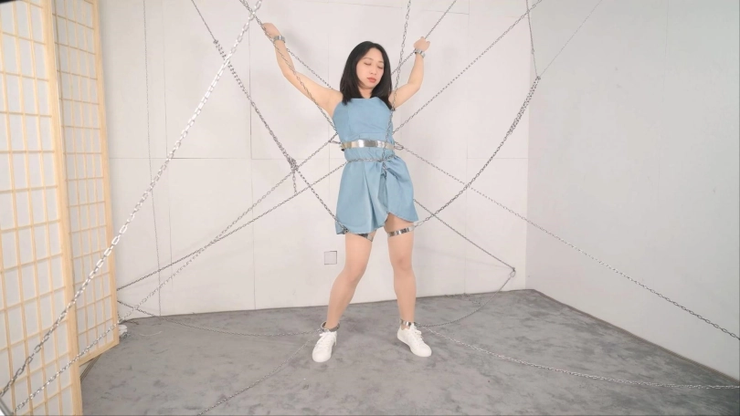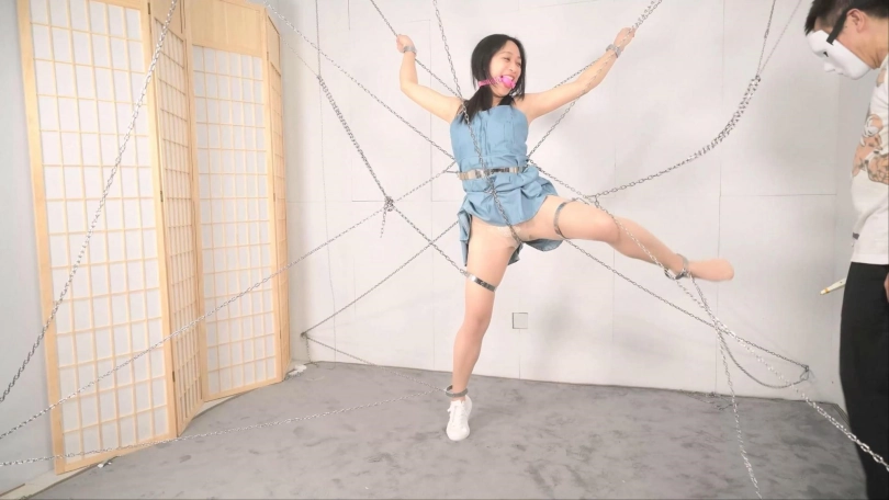 搭建这个铁链阵可是花费了不少功夫,当然不能白白浪费,要让妹子好好体验,这次正好是沐小雨接受铁链洗礼,跟她玩特别热闹有意思,沐小雨每次还会观察用的啥工具惩罚,就喜欢看她见到工具时的惊恐、拒绝和无奈。这次先给她放置个半小时好好体验铁链镣铐还有大腿铐固定,以及股链的深深拉扯。惩罚工具增加了戒尺,最后的筋膜枪可以消耗完她最后那点力气,斜躺在铁链网上慢慢体味这痛并快乐的经历。