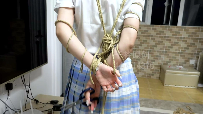 【子衿】菲菲五花团缚挣扎揉胸挠痒TK 一把剪刀逃脱 练瑜珈的柔韧度就是好