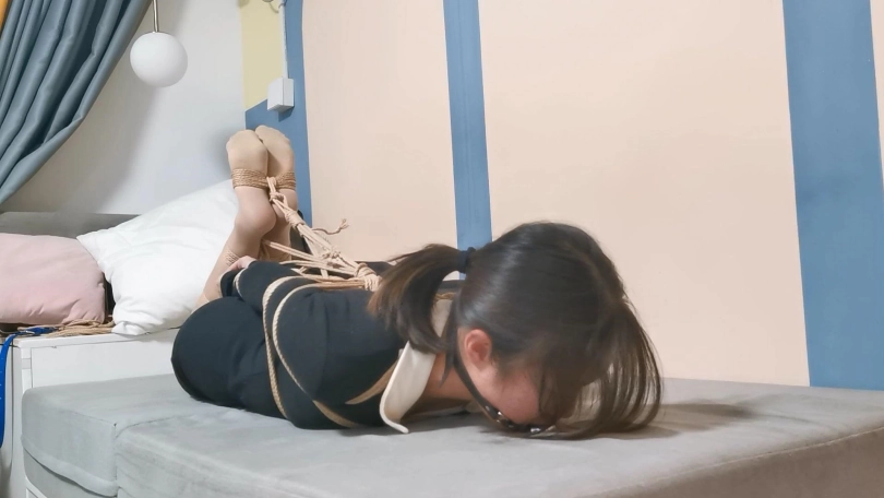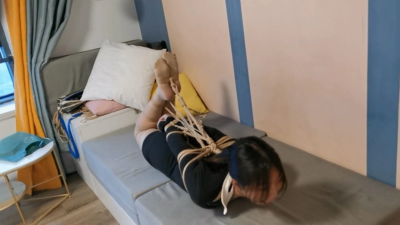 小姑娘还是比较可爱的,性格很腼腆,一开始说自己柔韧性可以,被绑上了直臂驷马就后悔了,被堵嘴了又不吭声,最后解开的时候已经在默默流眼泪了。