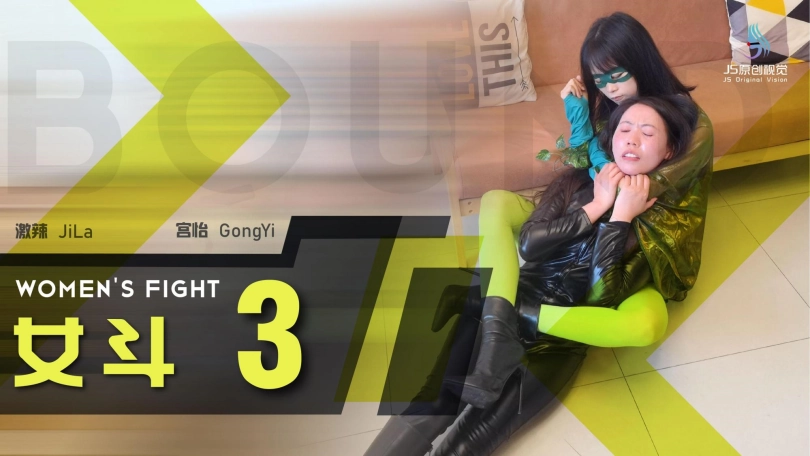 毒腾女找到暗夜女侠,两人一言不合亏就开始打了起来。毒腾女趁机从后面抱住暗夜女侠,双腿紧紧的扣住对反过的身体,同时臂对桉叶女侠进行锁喉。女侠不断挣扎,但很快便缺氧晕了过去。女侠再次醒来时候,发现自己手脚被镣铐束缚着。她想挣脱,但铁链很牢固。过了一会毒腾女走了过来,用她穿着靴子的脚踩住女侠的脖子,毒腾女此时只有一只脚着地,女侠看准时机,抓住她的脚用力一抬,女腾女失去重心摔在地上晕了过去。当她再次醒来时候,她发现自己被铁链镣铐束缚成驷马的姿势趴在床上,嘴巴里还塞着口球。此时女侠走进房间,用皮鞭抽打着毒腾女的身体。打累的女侠脱掉自己的靴子来到床上,她捧起毒腾女的脚丫,抚摸并亲吻着。突然女侠用力掰着对方的脚,毒腾女痛苦的挣扎着。但很快她的脖子被女侠用片子勒着,慢慢的睡了过去。。。