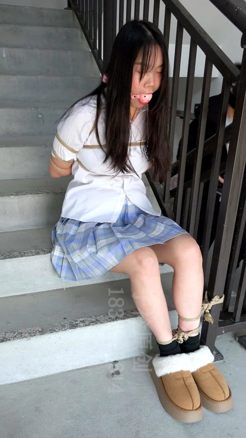 【子衿】楠楠五花紧缚口球楼道放置 听着楼上说话 流口水