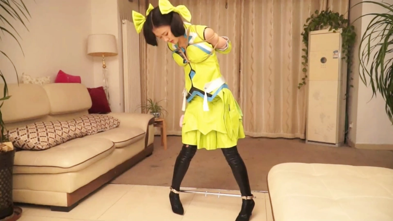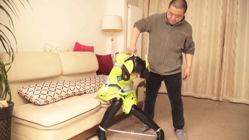 这次是令人期待的强迫分腿,合不拢的双腿被逼着艰难的挪步