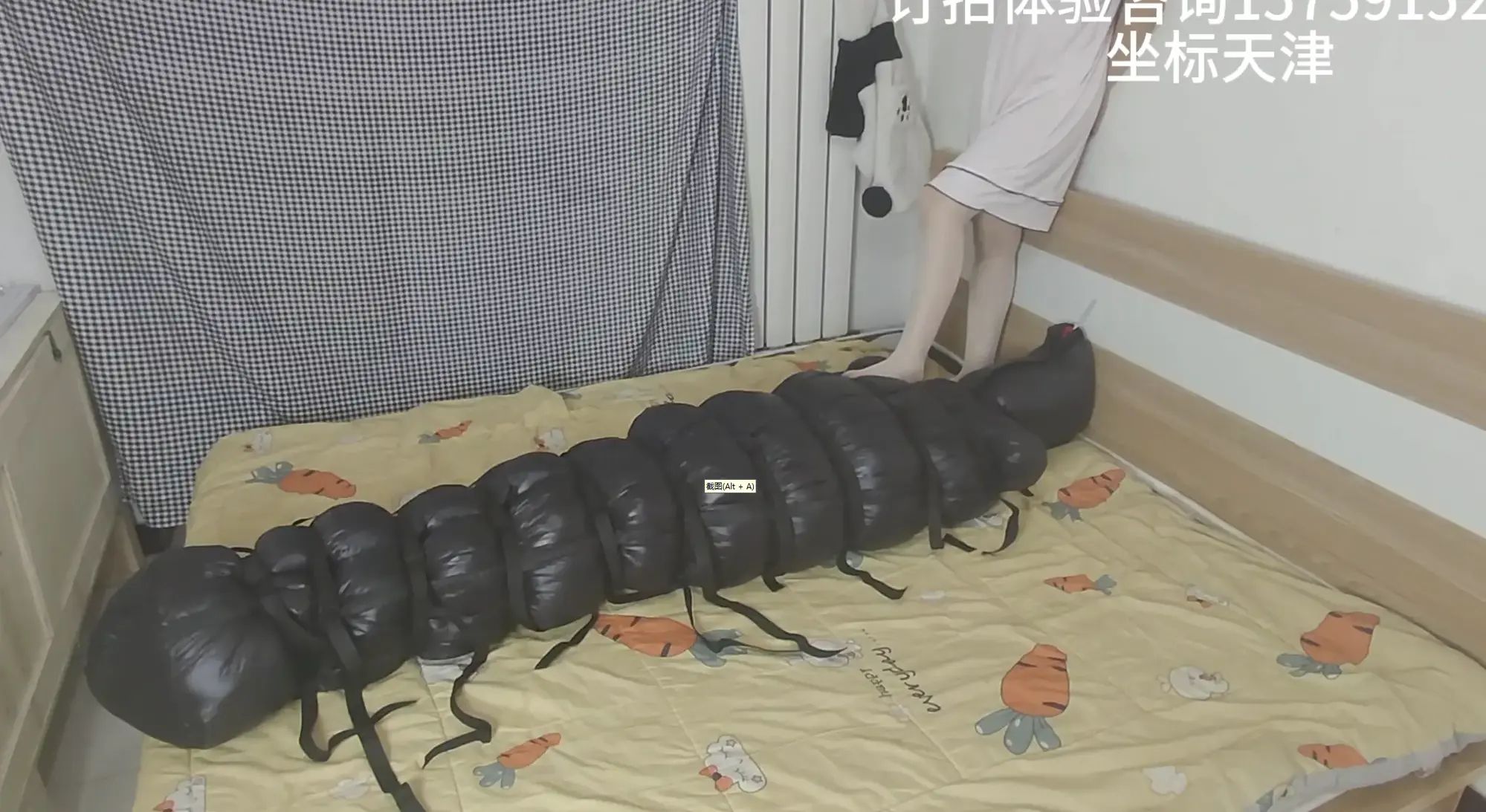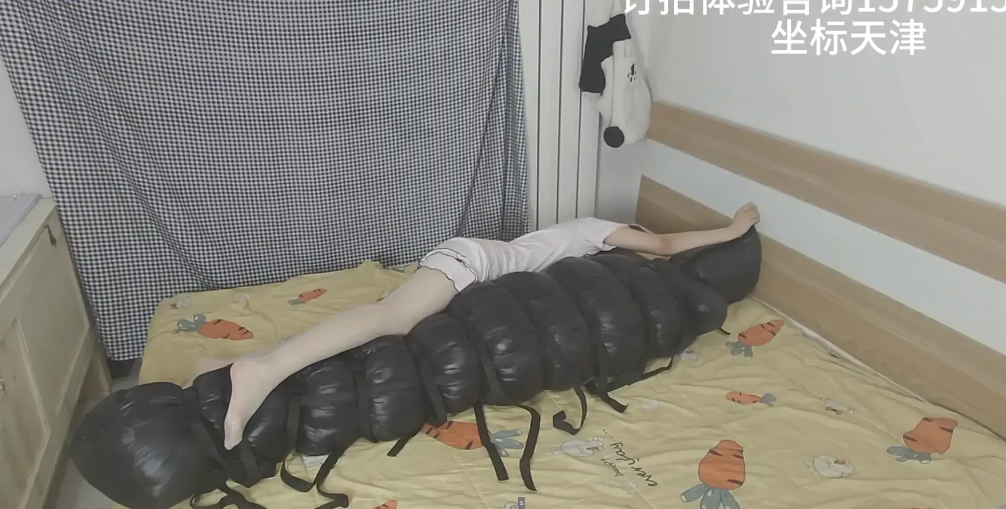 不知道学姐从哪里淘来的羽绒睡袋,把小学弟装进去看看,哇~好舒服呀,软软的,正好可以当抱枕~有没有想当学姐抱枕的宝宝们~